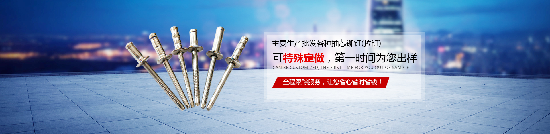 開口型抽芯鉚釘(拉釘)| 封閉型抽芯鉚釘| 不銹鋼抽芯鉚釘| 雙面沉頭抽空鉚釘| 拉絲鉚釘(口杯鉚釘)| 拉花鉚釘 酒盒鉚釘| 尼龍塑膠鉚釘| 結構型高強度鉚釘 更多>>